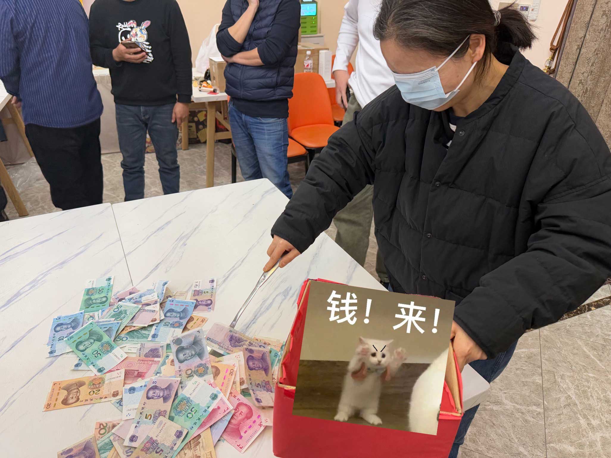 蒙眼鏟錢游戲更是將現(xiàn)場的歡樂氛圍推向了極致。蒙上雙眼的同事們在劃定區(qū)域內(nèi)小心翼翼地摸索前進,努力鏟起象征著好運的