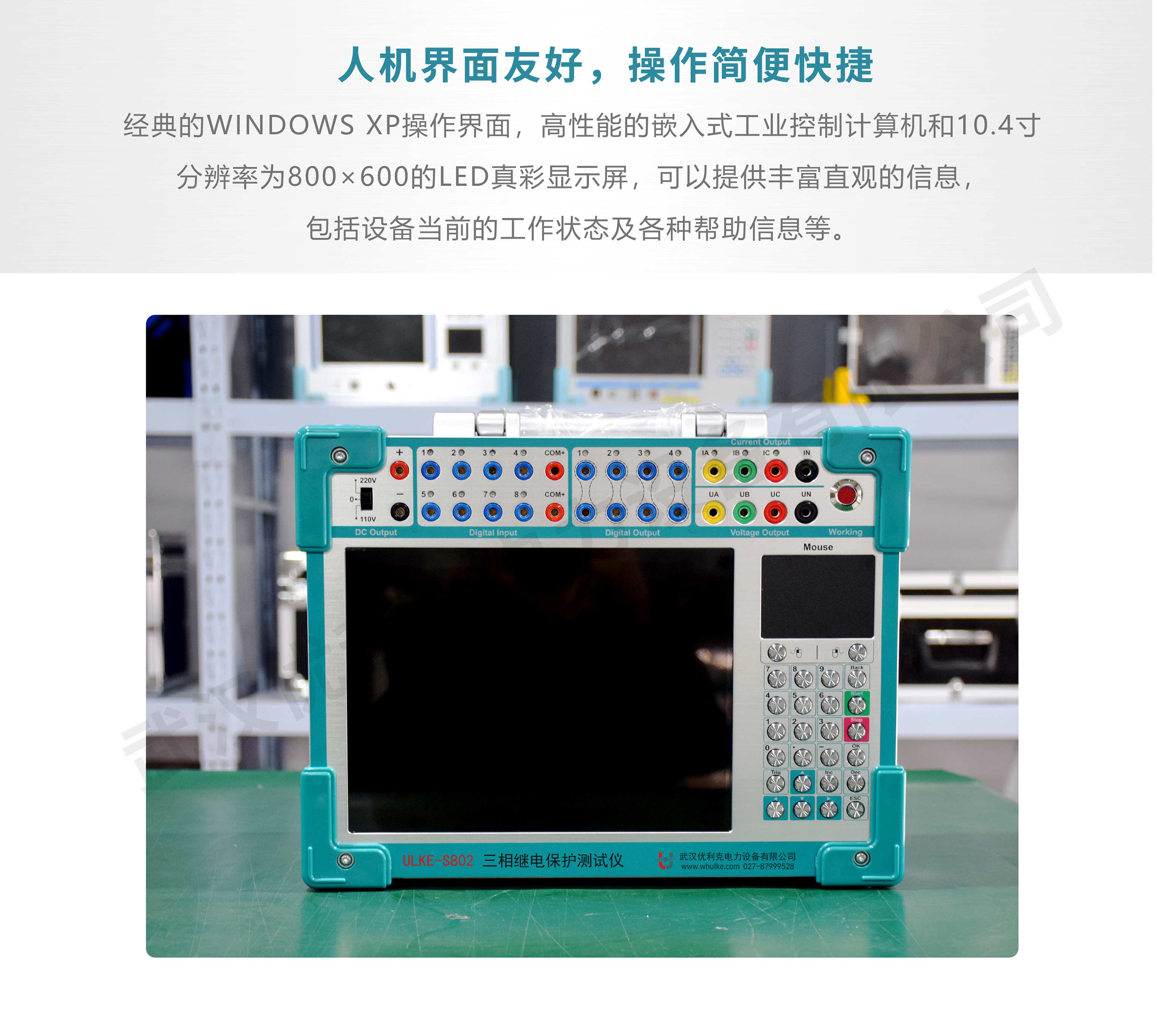 3.經(jīng)典的Windows XP操作界面,人機(jī)界面友好,操作簡(jiǎn)便快捷;高性能的嵌入式工業(yè)控制計(jì)算機(jī)和8.4寸分辨率為800×600的TFT真彩顯示屏,可以提供豐富直觀的信息,包括設(shè)備當(dāng)前的工作狀態(tài)及各種幫助信息等。