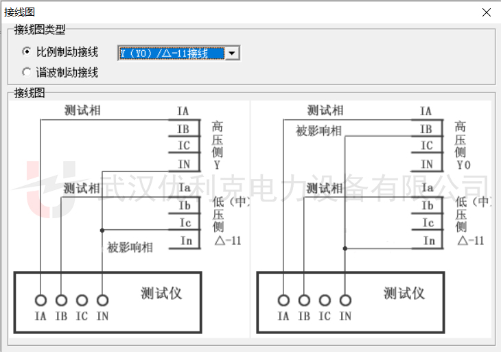 高壓側(cè)(Y側(cè)):IA接A相,相位設(shè)為0°。