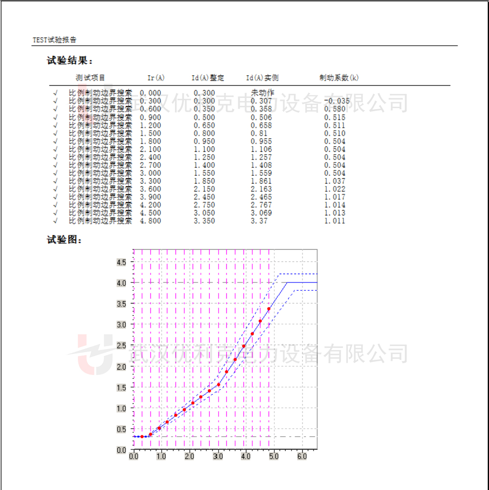 設(shè)置多個制動電流點(如Ie、2Ie),觀察差動電流動作值,繪制比率制動曲線。